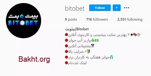 سایت شرط بندی بیتوبت فعالیت خود را مدتی است آغاز کرده و از جملههای سایتهای تازه وارد در عرصه شرط بندی است. این سایت در اینستاگرام فعالیت خود را از اسفند 1398 آغاز کرده است.