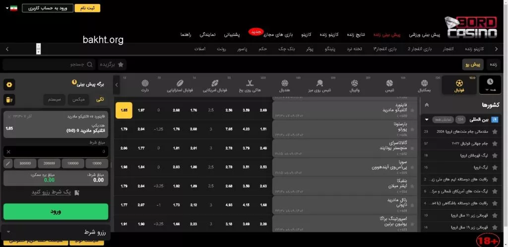 برد کازینو (Bord Casino) یک سایت شرط بندی فارسی زبان است که با خدمات جالبی از جمله پیش بینی ورزشی، کازینو و اپلیکیشن شرط بندی مشغول به فعالیت است.