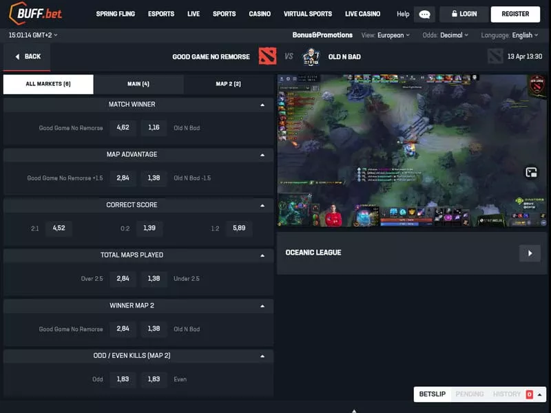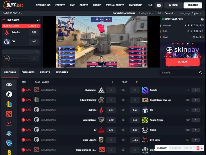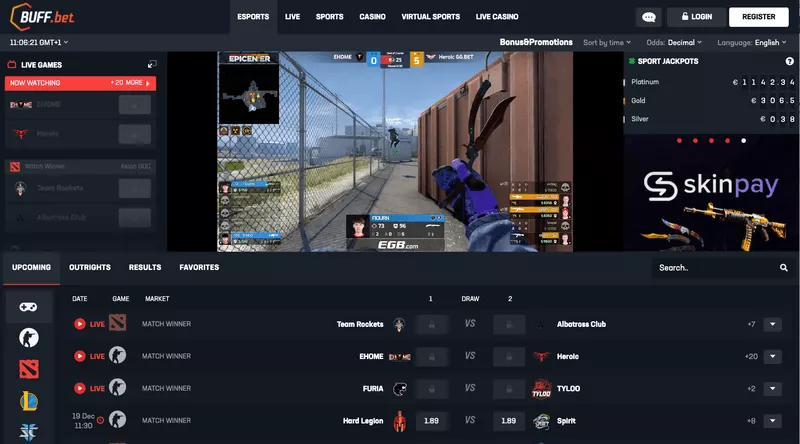 با ورود به صفحه اصلی سایت شرط بندی بافبت به وبسایتی مملو از امکانات مختلف برمیخورید که شرط بندی را برای مخاطب ساده میکنند. صفحه اصلی به طور خودکار تمام مسابقات ورزشهای الکترونیکی پیش رو را به نمایش میگذارد. شما میتوانید از طریق پخش زنده Twitch.tv در بالا، آخرین اتفاقات بازیهای در جریان را تماشا کنید. ما با یک سایت شرط بندی حرفهای طرف هستیم که باعث میشود هرگز به قابل اعتماد بودن آن شک نکنید.