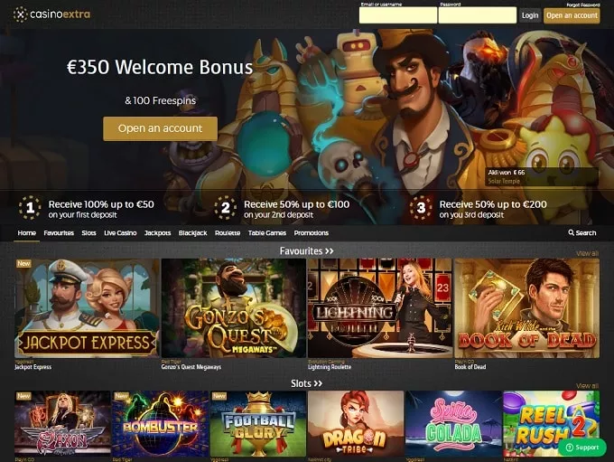 کازینو اکسترا (به انگلیسی: Casino Extra) کازینو آنلاین است که بسیاری از بازیهای کازینویی از جمله بازیهای محبوب اسلات را از بهترین توسعه دهندگان ارائه میدهد.