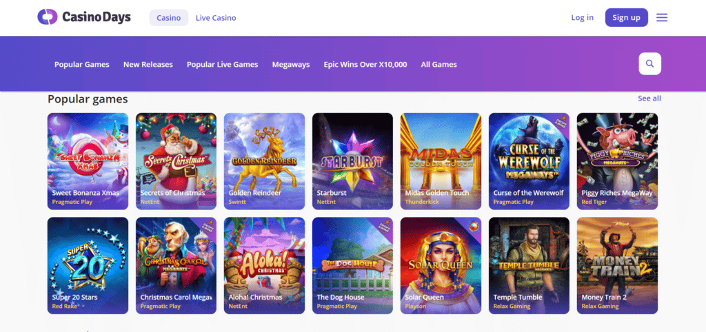 - CasinoDays بازیهای کازینوی زنده را ارائه میدهد.