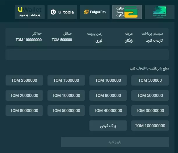 | شارژ و برداشت | درگاه بانکی، ارز دیجیتال، ووچر یوتوپیا |