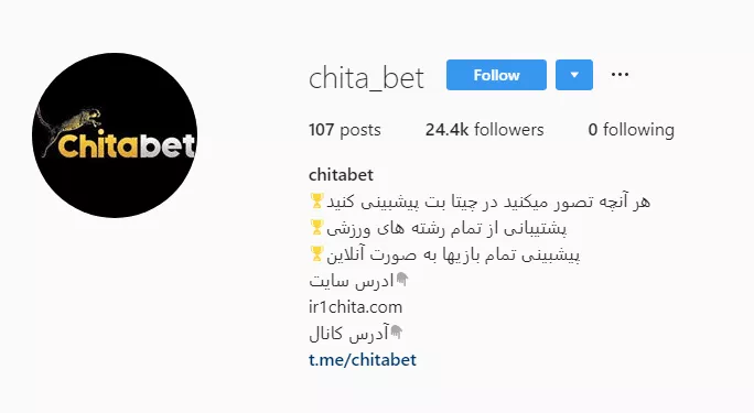 صفحه اینستاگرام سایت چیتا بت، نزدیک به 25 هزار دنبال کننده دارد.