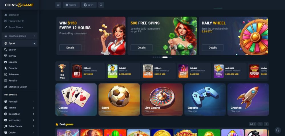 کوینز گیم (Coins.game) سایت خارجی فعال در حوزه شرط بندی است که خدماتی از جمله کازینو و پیش بینی ورزشی را در یک پلتفرم مبتنی بر ارز دیجیتال ارائه میکند.