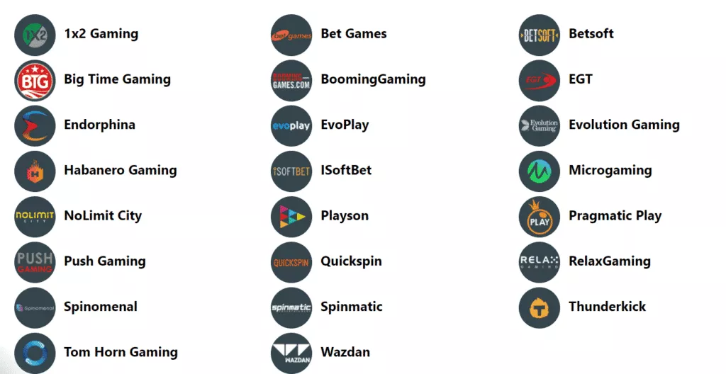 - این کازینو با ارائه دهندگان بازیهای کازینویی محبوب مانند ۱×۲ Gaming و EGT همکاری میکند. این دو شرکت بین بازیکنان بسیار محبوب هستند و بازیهایی عالی را ارائه میدهند.