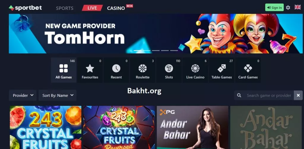 اسپورت بت به تازگی بخش کازینو بتا را اضافه کرده که تقریبا بازیهای مختلف کازینویی در آن در دسترس هستند.