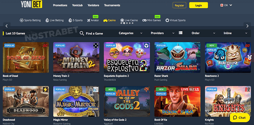 یونی بت بیشتر از 4 هزار بازی را از 60 توسعه دهنده معتبر کازینویی ارائه میکند. این بازیها از توسعه دهندههای میکروگیمینگ و پرگمتیک پلی ارائه میشوند.