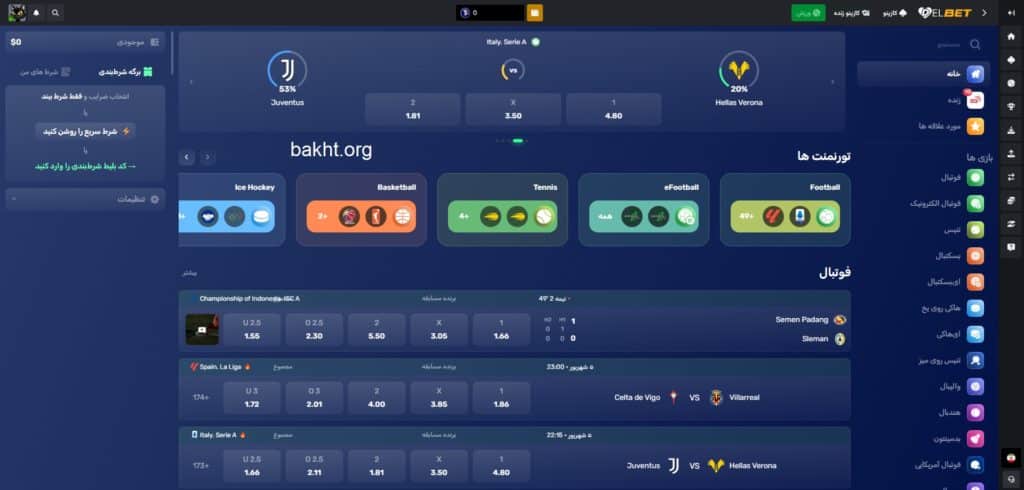 در کنار بخش پیش بینی ورزشی، اگر از منوی سمت راست روی گزینه زنده بزنید، رویدادهای ورزشی در حال برگزاری را میتوانید ببینید و پیش بینی خود را روی آن به ثبت برسانید.