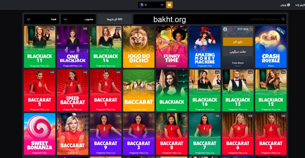 بلک جک، باکارات، سیک بو، انواع بازی رولت، انواع بازی پوکر و ویدیو پوکر با دیلر زنده در دسترس کاربران است.