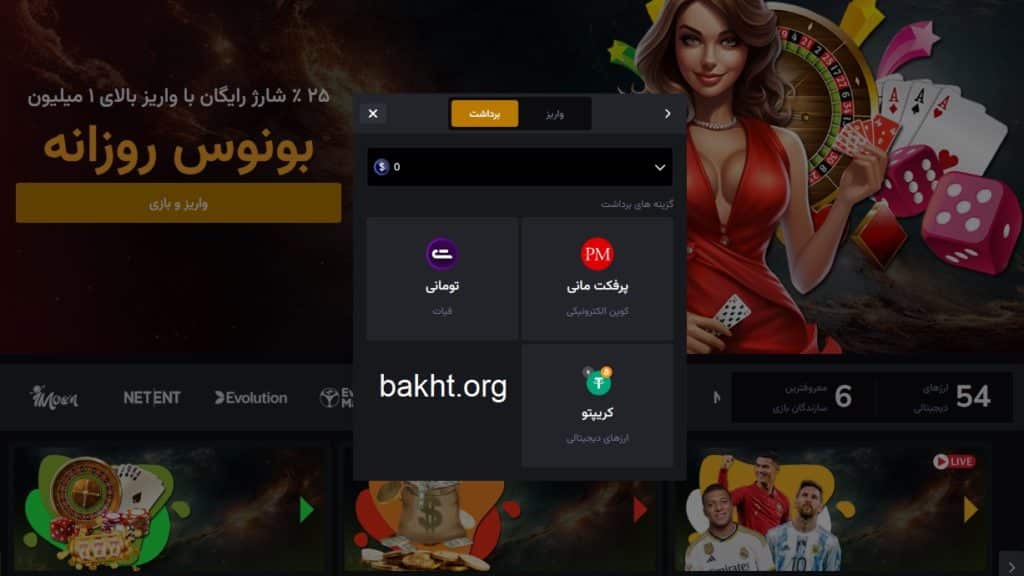 امکان افزایش موجودی حساب کاربری و بازی کردن در دل بت از سه طریق درگاه بانکی، پرفکت مانی و ارز دیجیتال امکان پذیر است.