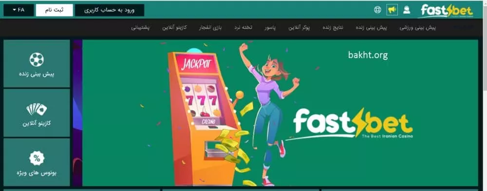 فست بت از سایتهای شرط بندی ایرانی و از نمایندگان فیفا ۹۰ است که با ثبت نام در فست بت میتوانید از امکانات آن از جمله پیش بینی ورزشی و کازینو استفاده کنید.