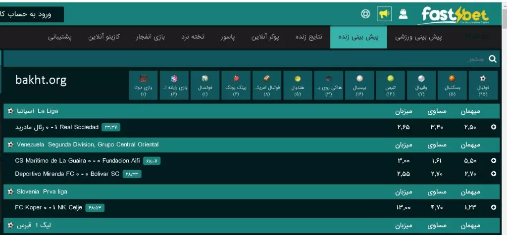اگر به دنبال پیش بینی مسابقات ورزشی هستید، fastbet میتواند انتخاب خوبی برای شما باشد. در بخش پیش بینی ورزشی فست بت 15 رشته ورزشی قابل پیش بینی هستند.