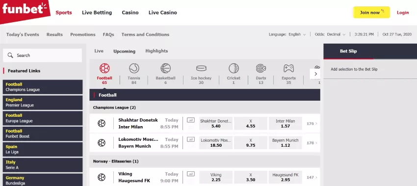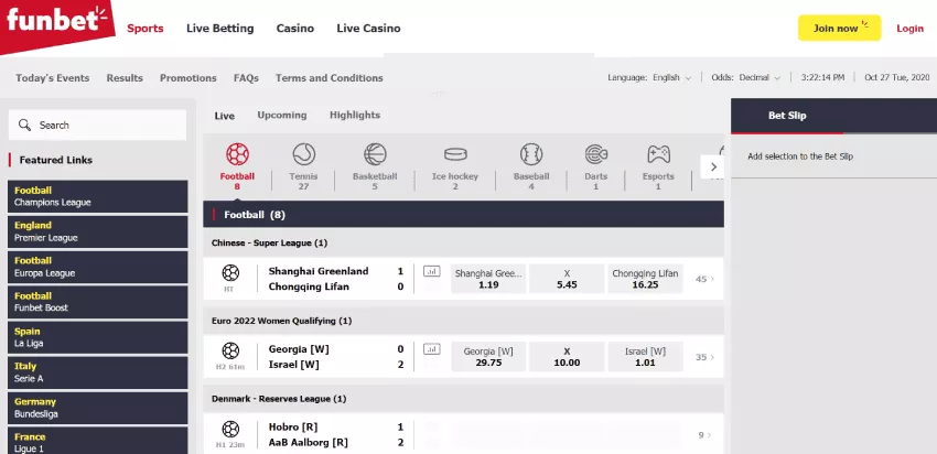 در بخش مربوط به فوتبال بیشتر لیگهای معتبر اروپایی و لیگهای سطوح پایین تر هم در دسترس قرار دارد. رشتههای ورزشی در دسترس در این سایت: