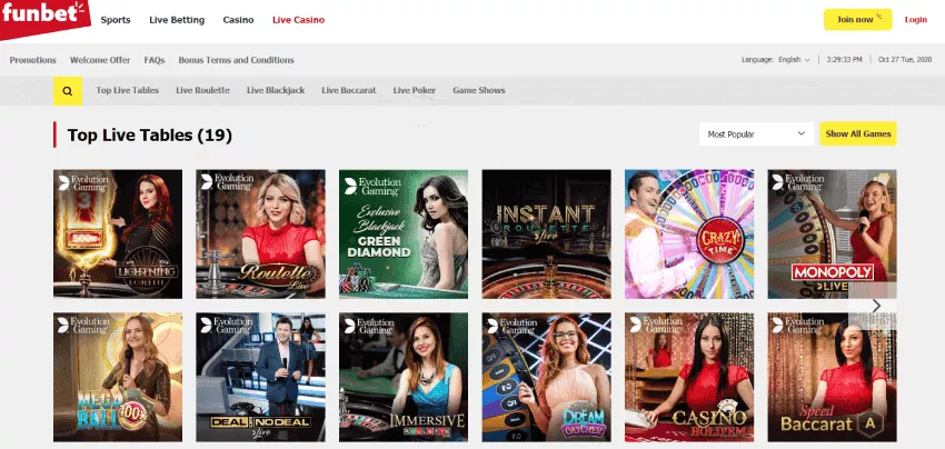 بازی باکارات، بازی رولت، بازی بلک جک، بازی پوکر از جمله بازیهایی است که با دیلر زنده در این سایت در دسترس است.