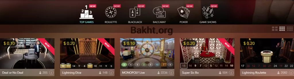 بازیهای ارائه شده در این کازینو زنده با دیلر زنده به زبانهای روسی، انگلیسی، فارسی و عربی اجرا میشود و در مجموع از چهار توسعه دهنده نرم افزاری، 440 بازی کازینویی به صورت کازینو زنده در این سایت ارائه میشود.