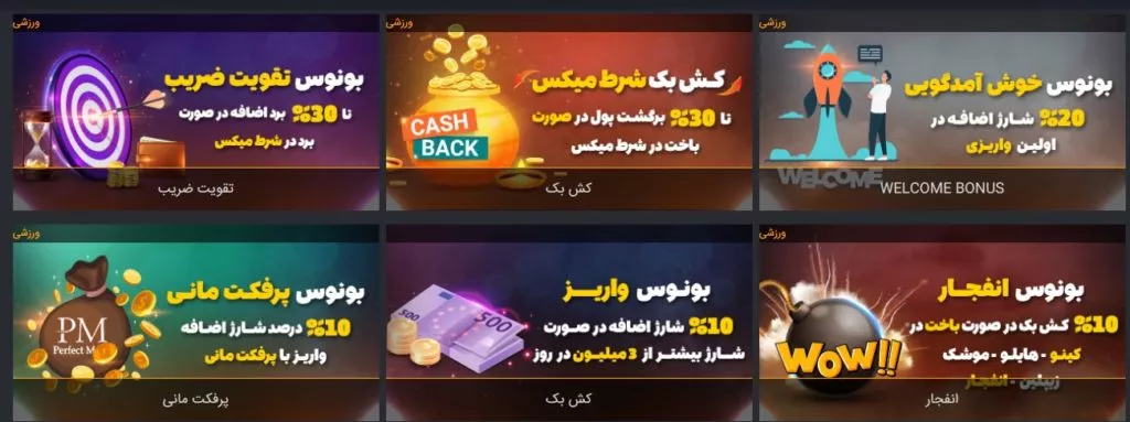 برای بازی انفجار، زیپلین و های لو نیز 10 درصد بونوس در نظر گرفته شده است. 10 درصد بونوس برای شارژ حساب از طریق پرفکت مانی و شارژ بیشتر از 3 میلیون تومان هم میتوانید دریافت کنید.