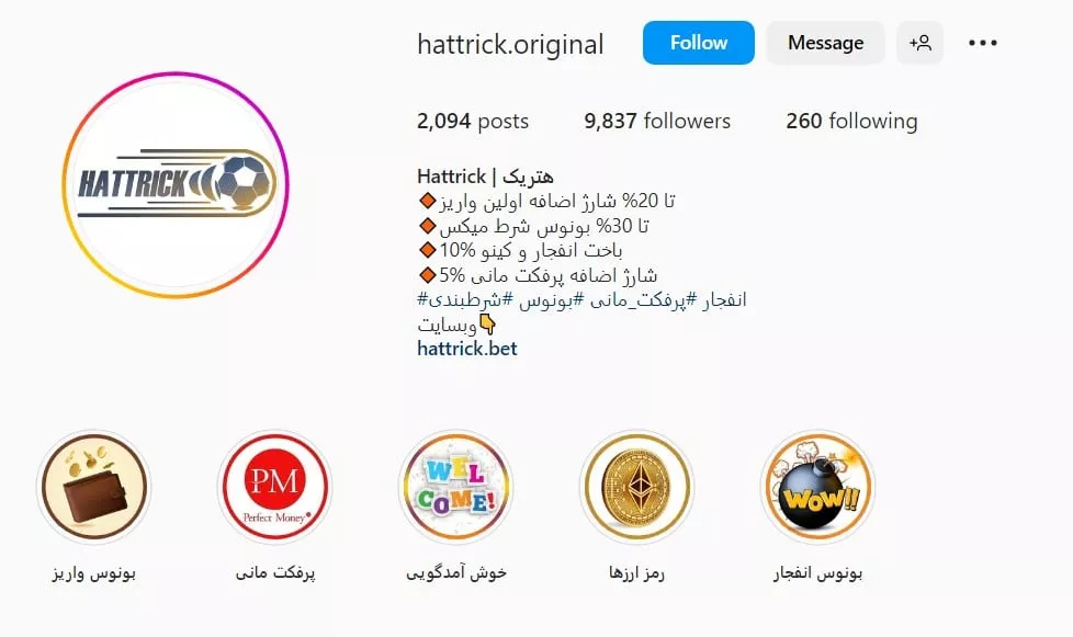سایت شرط بندی هت تریک در اینستاگرام و تلگرام حضور فعال دارد. صفحه اینستاگرام هتریک بیشتر از 9 هزار نفر عضو دارد و به صورت روزانه به روز رسانی میشود.