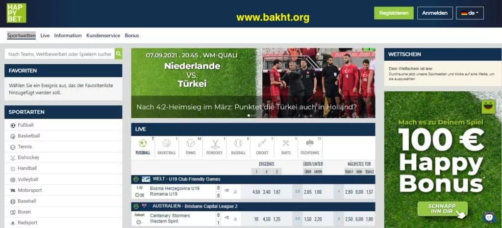سایت شرط بندی هپی بت (به انگلیسی Happy bet یا Hpybet)، یک سایت شرط بندی خارجی است. هپی بت در کشورهای اروپایی از جمله آلمان، اتریش و ایتالیا فعالیت میکند. حجم فعالیت هپی بت به احداث صدها مکان شرط بندی در کشورهای آلمانی زبان رسیده است. هپی بت تنها روی بخش پیش بینی ورزشی از جمله شرط بندی فوتبال، بسکتبال، والیبال، هندبال و سایر رشتههای ورزشی فعالیت میکند. با توجه به پیچیده بودن قوانین بازیهای کازینو، مجموعه هپی بت تصمیم به تمرکز روی بازیهای ورزشی کرد. در این نوشته شما را بیشتر با سایت شرط بندی هپی بت آشنا میکنیم. مجله بخت