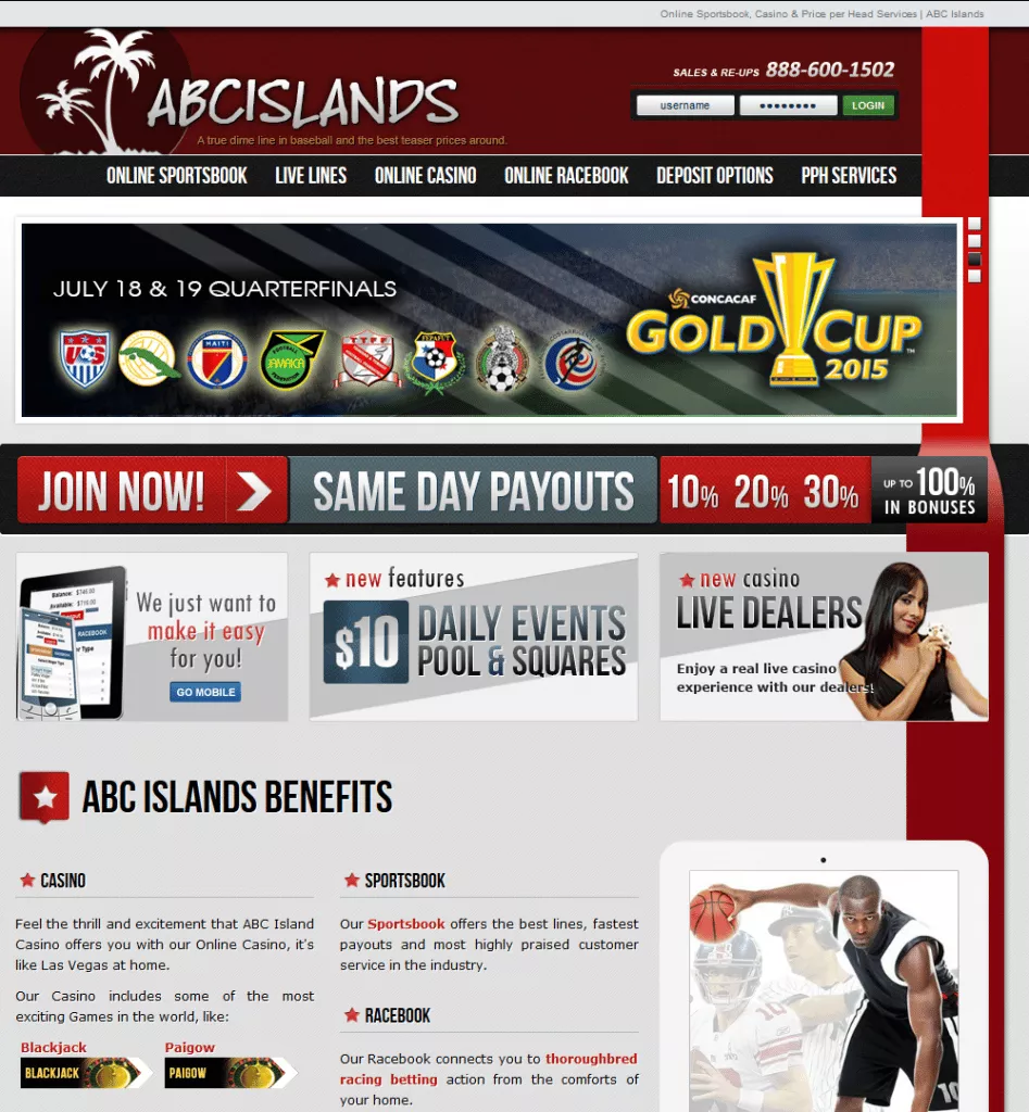 یکی دیگر از سایتهای سرآمد کاستاریکایی روبرو هستیم که کار خود را از سال 1998 در بستر اینترنت آغاز کرده است. SBR به عنوان مرجع معرفی بهترین سایتهای شرط بندی جهان، به این سایت نمره B داده است که باعث میشود در جمع سی سایت برتر جهان در این حوزه جا بگیرد. مانندی بسیاری دیگر از سایتهای شرط بندی کاستاریکایی، به عنوان یک کاربر ایرانی میتوانید در abcislands عضو شوید و بازی کنید. نکته منفی این است که افلیت ندارند و لینک زیرمجموعهگیری نمیدهند.