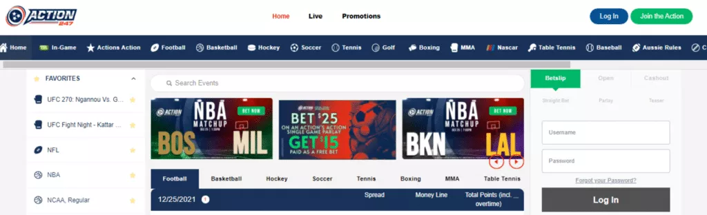 اکشن247 ممکن است توسط اهالی تنسی ساخته شده باشد، اما طیف وسیعی از بازارهای شرط بندی ورزشی موجود در سراسر جهان را پوشش میدهد.