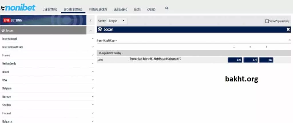 نام کشورهای متفاوت به عنوان زیرمجموعه آمده بود. ایران نیز در لیست بود. همین یک نکته قوت است. این نشان از این است که لیگهای بسیاری پوشش داده شدهاند که کار به ایران هم رسیده است. البته از این هم پا را فراتر گذاشتهاند. اولین سایتی هستند که دیدیم جام حذفی ایران را پوشش میدهند. همین حالا قادر به شرط بندی روی بازی تراکتور و نفت مسجد سلیمان هستید. البته اینجا آیتمهای فراوانی در کار نیست. تنها روی تیم برنده میتوانید شرط بندی کنید.