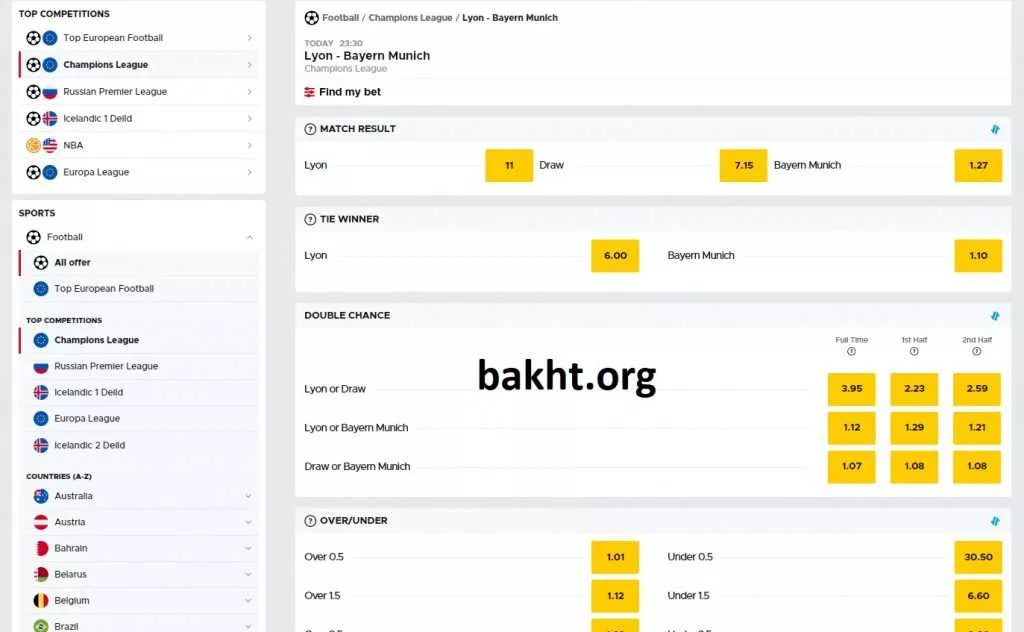 آیتمهای شرط بندی نیز کم نیست. مثلا سراغ بازی لیون و بایرن مونیخ رفتیم. بیش از چهارصد آیتم شرط بندی برای این بازی موجود بود که عدد بسیار خوبی است. چندین دسته بندی دارند که میتوانید آنها را باز کرده و سایر شرط هایش را ببینید. دستهبندیها این موارد هستند: نتیجه، برنده، شانس دو برابر، بالا و پایین، گلزنی دو تیم، بدون مساوی، نیمه، نتیجه دقیق، نتیجه دقیق گروهی، هندیکپ، اختلاف، مجموع گلها و غیره. بخش نتیجه دقیق گروهی جالب توجه بود. میتوانید روی نتیجه 1-0 یا 2-0 یا 3-0 یکی از دو تیم شرط بندی کنید و ضریبی بالای 20 بگیرید. مثلا ضریب تکِ 2-0، به 80 است.