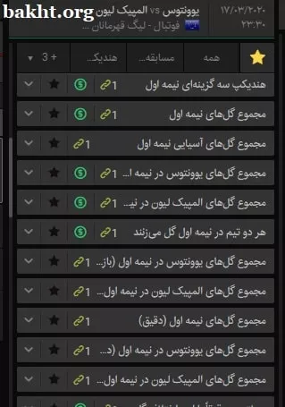 عکس زیر مربوط به بخش «نیمه اول» بازی یوونتوس-لیون است. همانطور که میبینید بسیاری از گزینهها به طور پیشفرض بسته هستند که کمک خوبی است تا راحتتر نگاهی گذرا به هر آیتم بیندازید.