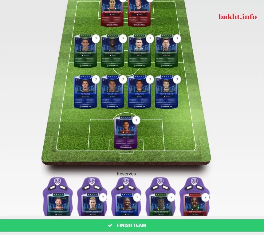 یازده بازیکن اصلی و پنج بازیکن ذخیره را انتخاب میکنیم. پس از انتخاب بازیکنان (و یک دستیار) روی دکمه سبزرنگ Save Selection کلیک میکنیم و حالا ترکیب آماده است. به خاطر رایگان بودن بسیار از ستارهها، توانستیم در تیم خود بازیکنانی مانند امباپه، بن یدر، دی ماریا، باکایوکو، وراتی، آدرین سیلوا، تیاگو سیلوا، فونته، مارکینوش، مونیر و لافونت را داشته باشیم.