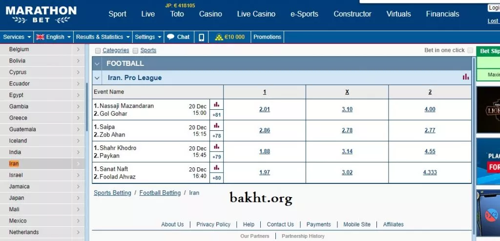 ماراتون بت رو بیشتر برای توتو استفاده میکنم به خاطر جک پات های چند صد هزار یورویی