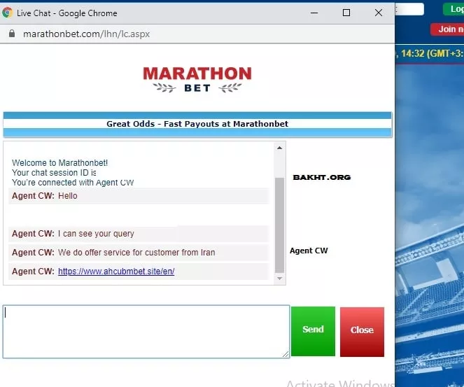 البته شاید به بخش ثبت نام آن بروید و نام ایران را در لیست نبینید. این مسئله را با پشتیبانی ماراتن سایت در میان گذاشتیم که اعلام کردند آدرس جدیدی دارند که در آن کاربران ایرانی نیز اجازه استفاده دارند. آدرس این سایت که به آن اشاره شده، ahcubmbet.site است. البته باید توجه کنید که نباید با IP آمریکا (فیلترشکن) این عمل را انجام دهید.