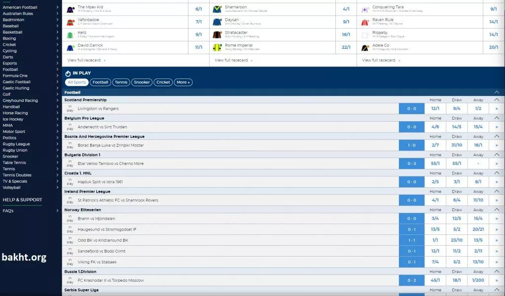 لیستی بلندبالا در سمت چپ دارند. در سمت راست نیز پروموشنها به چشم میخورند. برای شرط بندی زنده، میتوانید از بخش شرط بندی ورزشی به بخش In Play بپرید و آنجا به شرط بندی مشغول شوید. در کل سایت سریعی هستند و استفاده از آن ساده است.