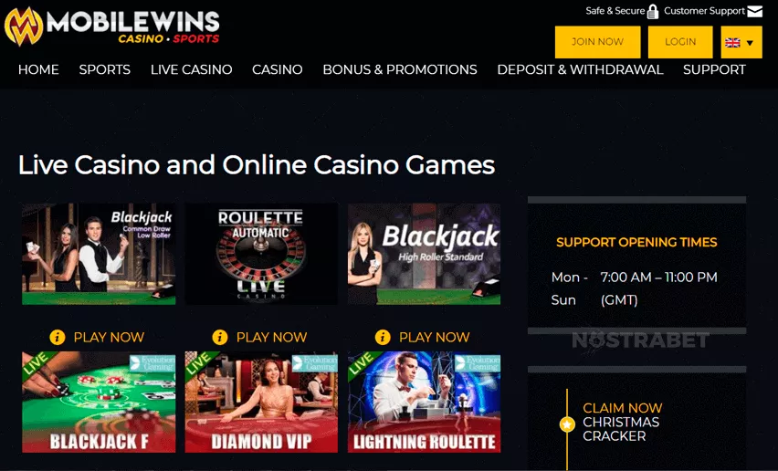 کازینو زنده موبایل وینز به صورت 24 ساعته با دیلرهای زنده در دسترس قرار دارد.