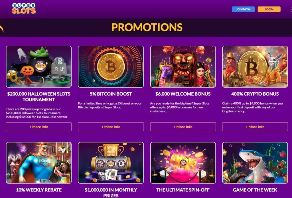 بهترین پاداش خوشامدگویی موجود به بازیکنان جدید تا 6000 دلار برای حداقل سپرده اولیه 20 دلار میدهد که مطابق با آنچه در کازینوهای دیگر وجود دارد است. این جایزه 35 برابری نیاز به رول اوور دارد و Super Slots Casino را به یکی از رقابتیترین سایتهای قمار برای بازیکنان ایالات متحده از نظر پاداشهای سخاوتمندانه برای بازیکنانی که اولین بار با آنها برخورد کرده، تبدیل میکند. مشتریان موجود میتوانند از برخی از تبلیغات بارگذاری مجدد قابل توجه نیز استفاده کنند. اما تنوع بیشتر هم مفید خواهد بود.