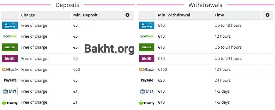 برای برداشت حداقل مبلغ 10 یورو خواهد بود (البته برای برداشت به صورت بیت کوین محدودیت حداقل 100 یورو است). برداشت جایزه بین 12 ساعت تا 3 روز طول خواهد کشید.