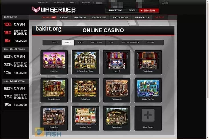 آنها به شرط بندی ورزشی معروف هستند. از این رو بعید است کسی به خاطر بازیهای کازینویی به وگر وب برود. با این حال، دسته بندی کازینویی آنها، بسیار متنوع است. بیش از پنجاه ویدئو اسلات، ویدئو پوکر، کینو، پای گو، بلک جک و غیره. بتسافت که سابقهای طولانی در تولید بازیهای کازینویی دارد، این کازینوی آنلاین را ساپورت میکند. بازیهای آنها در این بخش حتی شامل Virtual Horse Racing میشود که در نوع خود چیز جالبی است. شما حتی پیش از اولین واریز پول، میتوانید در این کازینو بازی کنید.