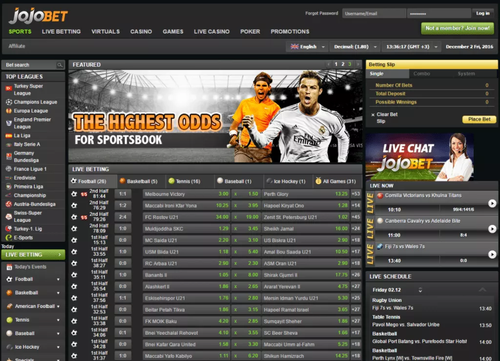متأسفانه سطح احتمالات جوجوبت را نمیتوان از جمله مزایای این شرکت در نظر گرفت. بنابراین، احتمال نتایج متضاد مورد انتظار یک رویداد تقریباً در سطح ۱.۸۵/۱.۸۵ است؛ وضعیتی که نمیتواند بالاتر از سطح میانگین رتبه بندی شود. به همین دلیل بعید است که افراد حرفهای این بنگاه شرط بندی را برای بازی خود انتخاب کنند؛ با این حال چنین وضعیتی ممکن است برای آماتورها چیز خوبی تلقی شود.