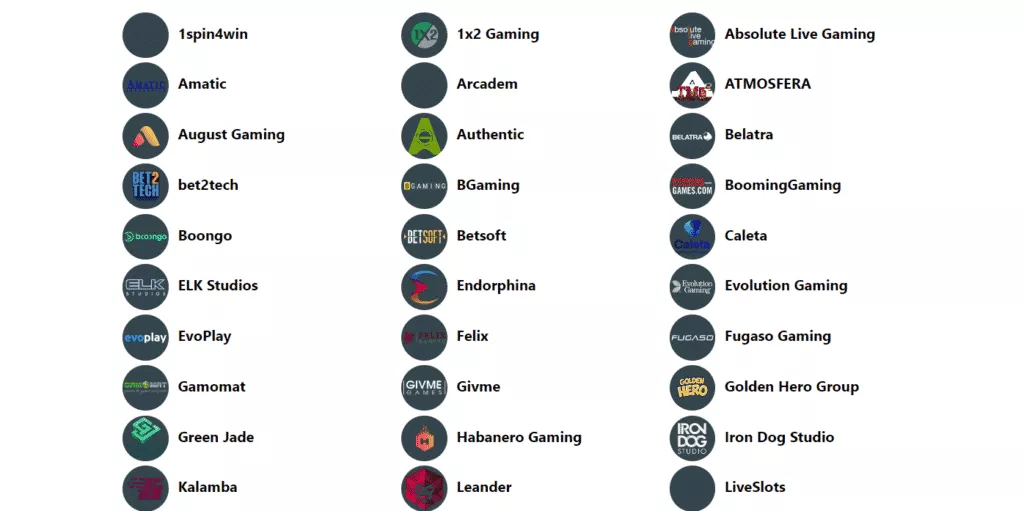 برای اطلاع از نامهای شرکتهای توسعهدهندهی بازی در این وب سایت شرط بندی، لیست زیر را چک کنید.