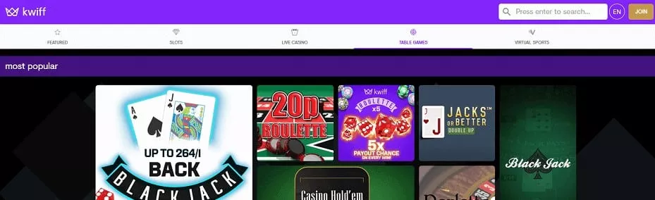 کازینو Kwiff طراحی بسیار سازمان یافته ای را در نظر گرفته است که بازی روی پلتفرم را بدون دردسر می کند.
