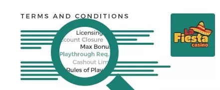 هر کازینوی مدرنی که امروزه به صورت آنلاین کار میکند، شرایط و ضوابطی را ارائه میکند که باید از آنها پیروی کرد تا امکان بازی ایمن فراهم شود. در لا فیستا، چند شرط و شروط کلیدی وجود دارد که بازیکنان باید آنها را در نظر داشته باشند. ما در طول بررسی خود، این شرایط و ضوابط را برای برجستهکردن شرایطی که در طول ایجاد حساب اعمال میشود، مطالعه کردیم. ما از شما میخواهیم قبل از واریز پول واقعی به سایت، شرایط و ضوابط را به طور کامل مطالعه و بررسی کنید.