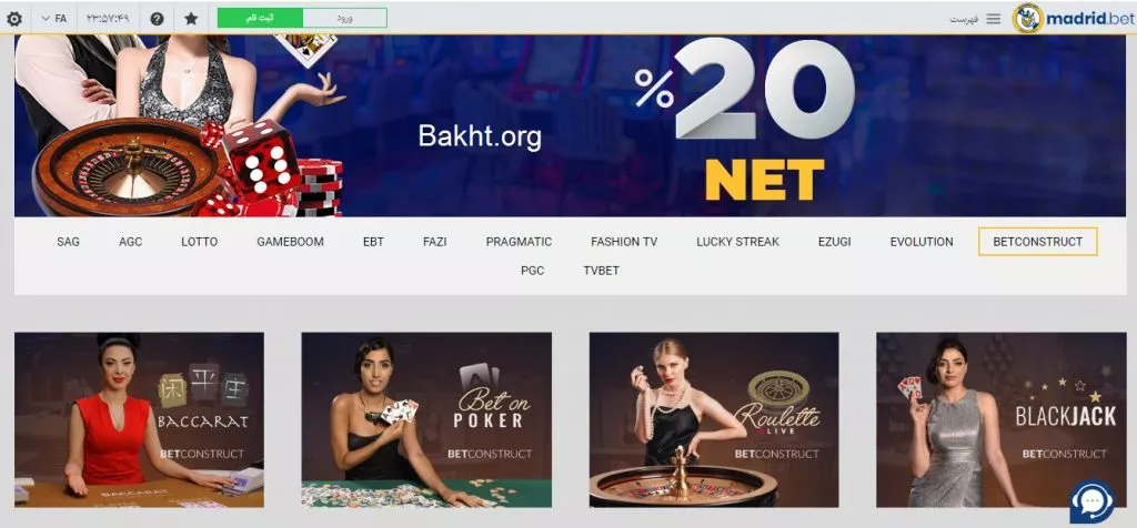 سایت مادرید بت تنوع کاملی از بازیهای کازینویی کارتی-مهارتی و شانسی دارد.