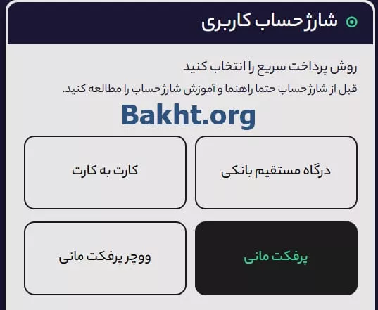 برای شارژ حساب در سایت مافیا بت، چهار روش درگاه مستقیم بانکی، کارت به کارت، پرفکت مانی و ووچر پرفکت مانی پیش روی شما است. حداقل مبلغ برای شارژ حساب 10 هزارتومان است و با هر کارت بانکی ایران میتوانید تا سقف 3 میلیون تومان در روز حساب خود را شارژ کنید.