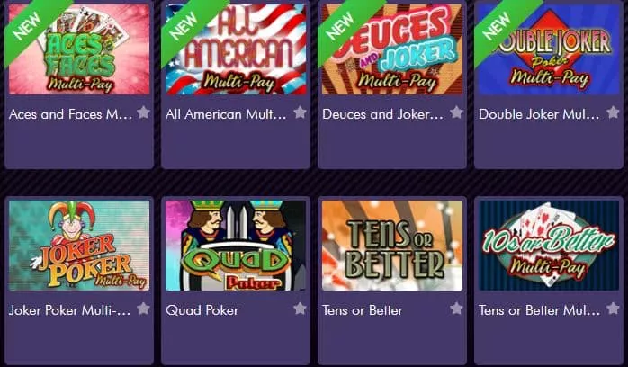 فناوری WGS به دلیل ارائه یک پلتفرم پوکر ویدیویی غنی شناخته شده است؛ که در طول سالها برای بهبود آن سخت تلاش کردهاند. بازیهای پوکر ویدیویی آنها با گزینههای تک دستی، چند دستی و 100 دستی عرضه میشوند که آنها را با سلیقه بازیکنان مختلف سازگار میکند. در این قسمت همه بازیهای پوکر ویدیویی که در حال حاضر در دسترس شما هستند را لیست کردهایم.