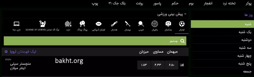 بازی دوتا و لیگ آف لجندز از جمله بازیهای الکترونیکی قابل پیش بینی در این سایت محسوب میشوند.
