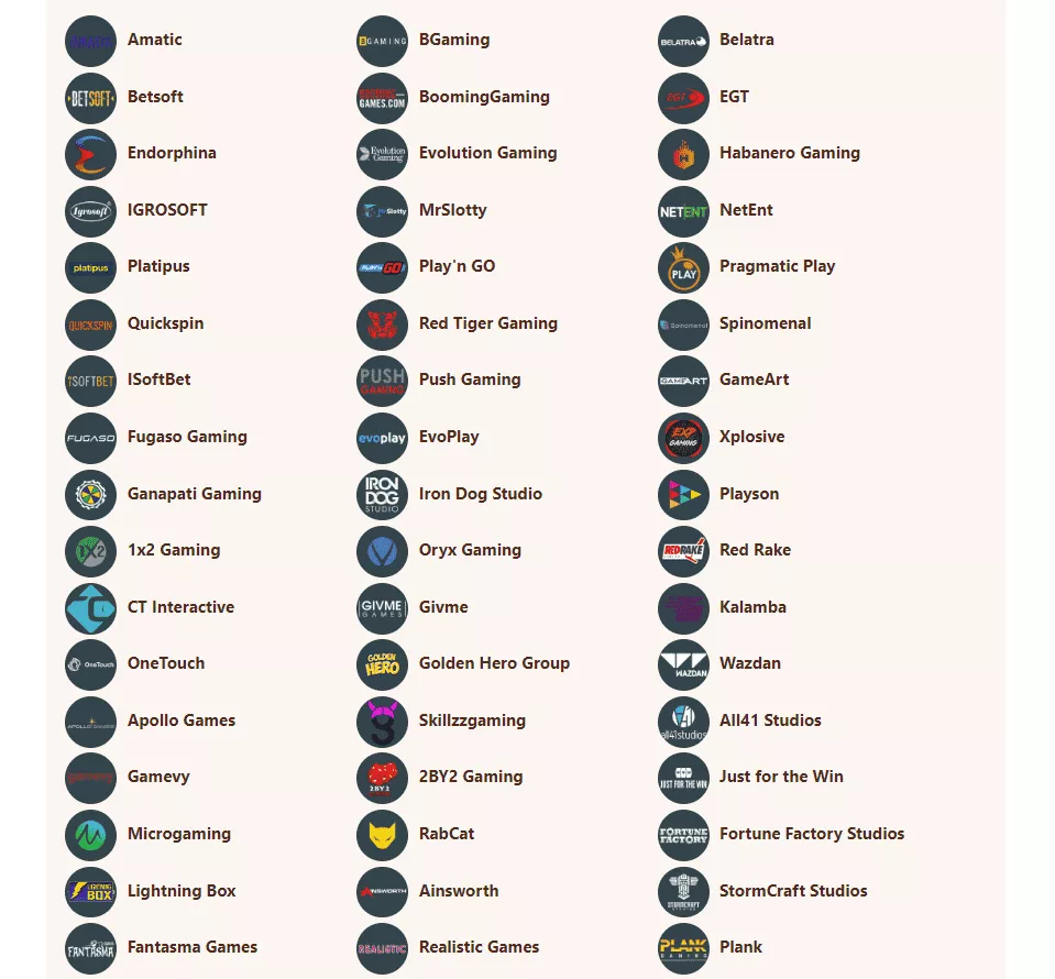 با توجه به تعداد بازیهای موجود در Oshi.io، بدیهی است که کازینو دارای پایگاه ارائهدهندگان عظیمی است. لیست زیر، شامل ارائه دهندگان این کازینو میباشد: