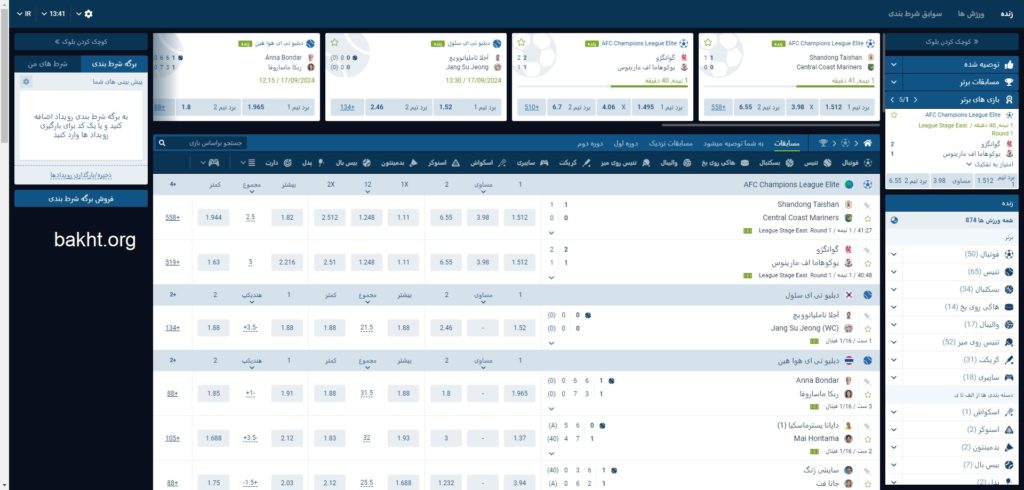 بیشتر از 1000 رویداد مختلف برای پیش بینی وجود دارد و میتوانید بر اساس رشته ورزشی مورد نظر، رویدادها را فیلتر کنید.