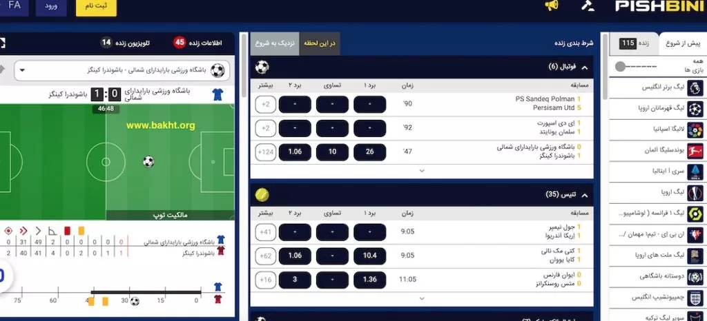 سایت شرط بندی پیش بینی (به انگلیسی: Pishbini)، یک سایت شرط بندی ایرانی است. پیش بینی در ابتدا با نام “بت چنل” فعالیت میکرد، اما از سال 2017 به پیش بینی تغییر نام داد. خدماتی همچون پیش بینی ورزشی (شرط بندی فوتبال) و بازیهای کازینو در این سایت ارائه میشود. با توجه به نام و دامنه سایت، میتوان حدس زد که گروهی قدرتمند پشت مجموعه پیش بینی هستند. این سایت در تلاش است تبدیل به یکی از بهترین و محبوبترین سایتهای شرط بندی ایرانی شود. حتی زمانی احلام، خواننده مشهور ایرانی به تبلیغ سایت پیش بینی پرداخت. همچنین، سایت پیش بینی تحت لیسانس کشور کوراسائو با ثبت شرکت اینتر گیمینگ است. در این نوشته شما را بیشتر با سایت شرط بندی پیش بینی آشنا میکنیم. مجله بخت