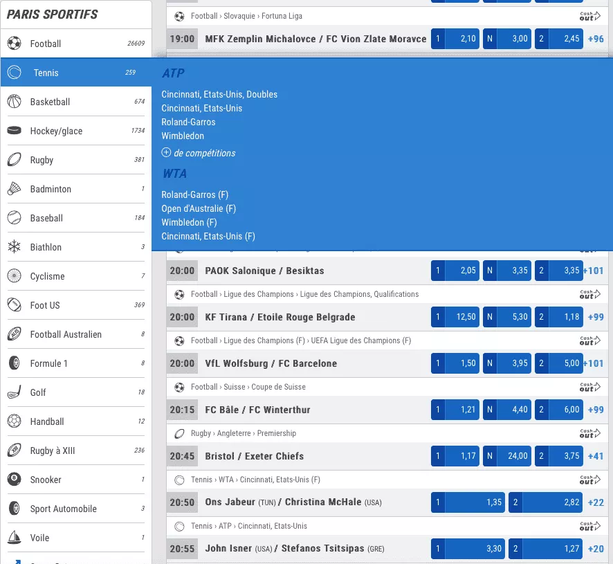 این وب سایت به کاربران اجازه میدهد تا در مسابقات مختلفی ورزشی مانند ورزشهای زمستانی، جام جهانی، قهرمانی شش ملت، المپیک و غیره شرط بندی کنند. در این وب سایت امکان پیش بینی 20 رشته ورزشی مختلف مانند فوتبال، تنیس، بدمینتون، بوکس، مسابقات ماشینسواری فرمول یک، اسکی روی زمین، والیبال، بسکتبال و غیره وجود دارد.