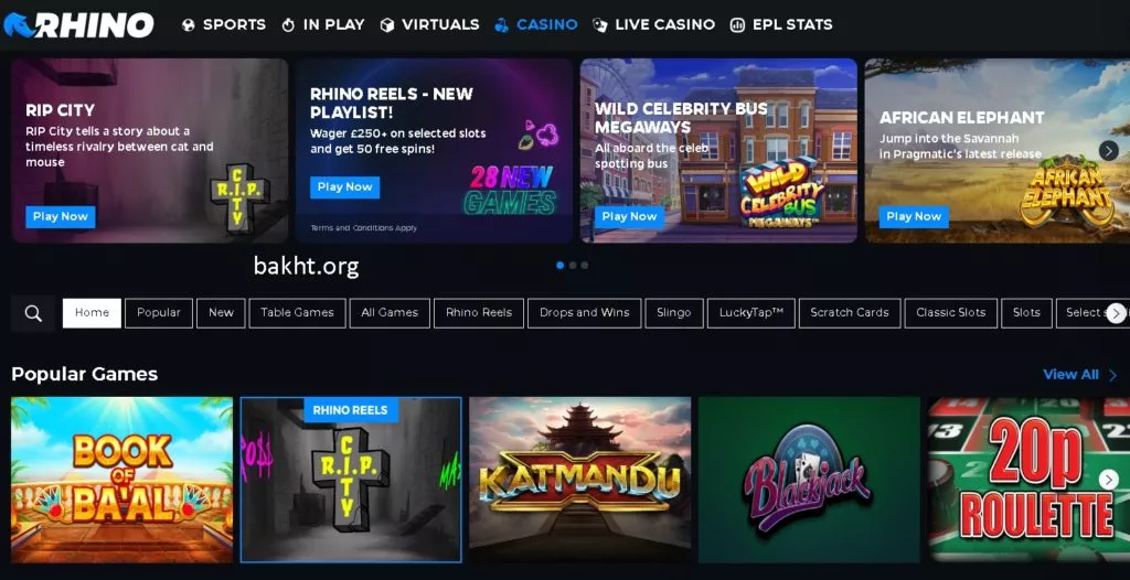 کازینو راینو بت با ارائه 200 بازی متفاوت، از دیگر بخشهای جذاب راینو بت محسوب میشود. البته که تعداد بازیها نسبت به سایتهای شرط بندی دیگر کمتر است.