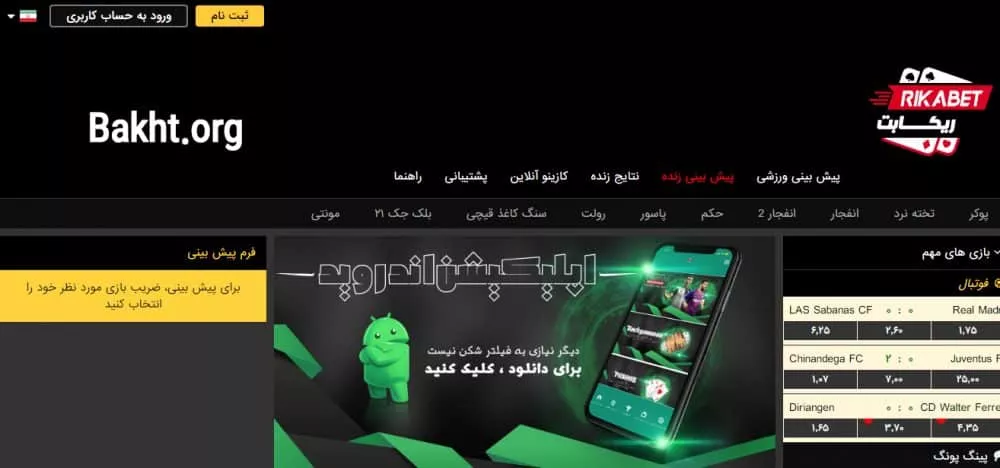| اپلیکیشن شرط بندی | دارد |