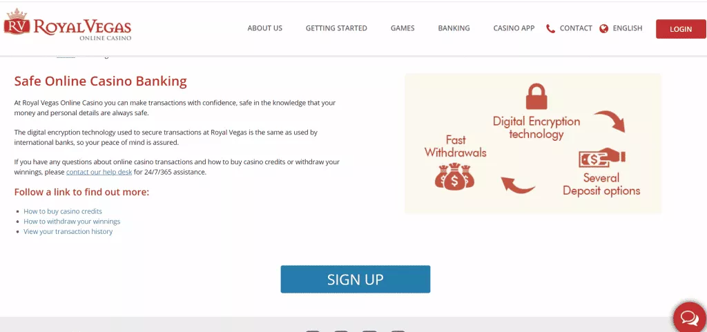 حال که صحبت از امور مالی شد، بهتر است بگوییم که گزینههای بانکی زیادی در این کازینو پیدا خواهید کرد که میتوانید از آنها برای واریز و برداشت از کازینو رویال وگاس، استفاده کنید.